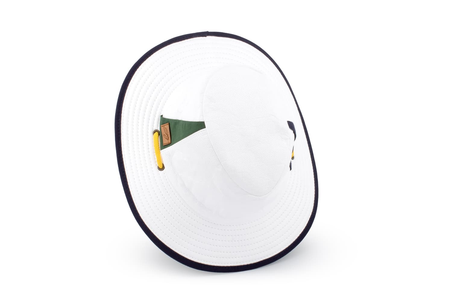 - Chapeau avec 7 cm de bord et livré avec deux liens mentonnière : jaune fluo et beige marine pour le chapeau blanc o